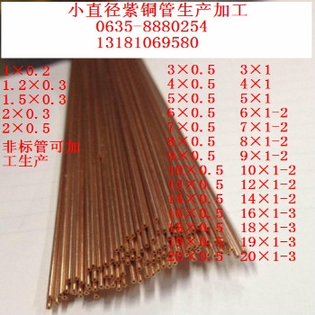 常年銷售紫銅管、黃銅管、紫銅盤管、紫銅直管、厚壁紫銅管、薄壁紫銅管、大口徑紫銅管、小口徑紫銅管、毛細紫銅管、紫銅套、空調專用管材質有:(T1、T2、T3、TP1、TP2、TU1、TU2)。紫銅直管、軟態(tài)紫銅管、紫銅盤管長度可以定尺,采用真空包裝及普通包裝,還可按客戶要求對產(chǎn)品進行包裝。